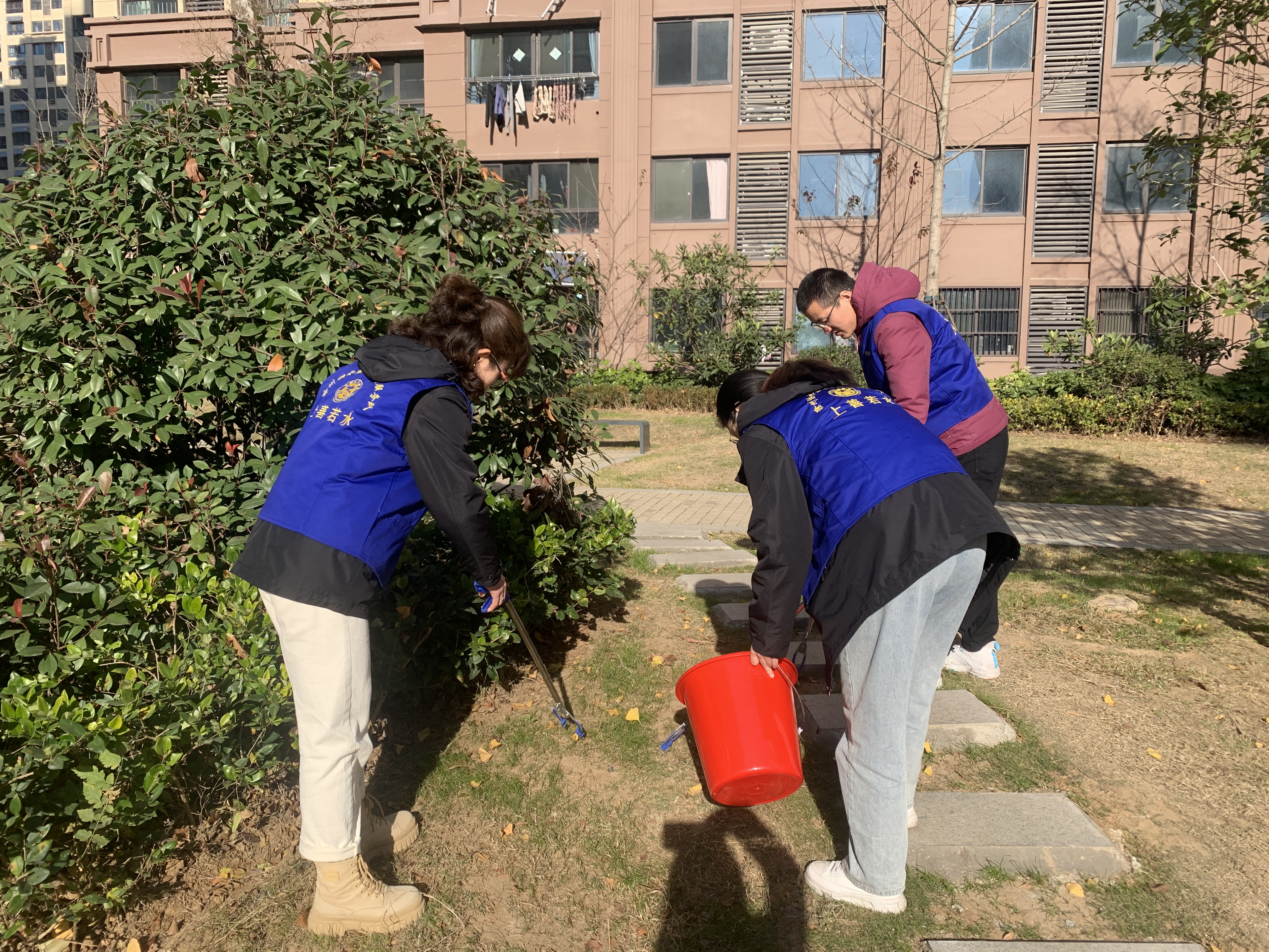 宣传活动结束后,志愿者们还对小区绿化带的烟头、杂草等垃圾进行清理。用实际行动践行“奉献、友爱、互助、进步”的志愿精神。