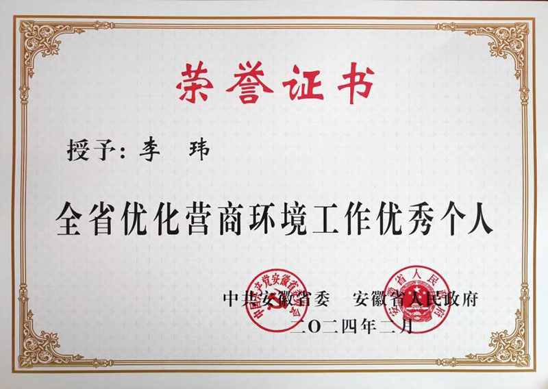 近日,我公司被琅琊区委、区政府评为2023年度为企服务工作重点协作单位先进集体,公司副总经理李玮同志被省委、省政府评为全省优化营商环境工作先进个人,分别在安徽省和琅琊区“新春第一会”上受到表彰。